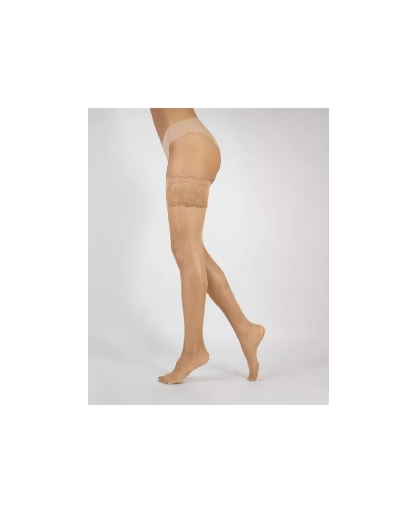 Le bas autofixant Versailles de Cette est une petite merveille de la rentrée! Les motifs de sa superbe jarretière en dentelle vont en faire craquer plus d’un. Celle-ci est renforcée d’une double bande en silicone pour garantir un maintien parfait sur la cuisse. Sa finition exceptionnelle Made in Italy grâce à son fil double guipé le rend ultra doux, confortable et élégant. Pointes renforcées. 20 deniers.