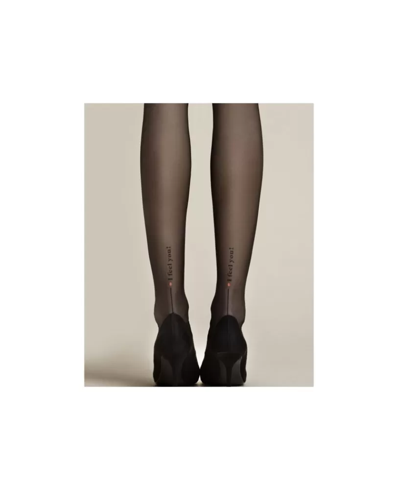 Le collant fantaisie I Feel You de Fiore laisse libre court à une fantaisie discrète. Le tatouage imprimé sur un voile transparent à la finition mat donne la pointe d’originalité qui vous distinguera des autres looks. La ceinture et les coutures sont plates. Les pointes invisibles sont renforcées. Gousset coton. 20 deniers.